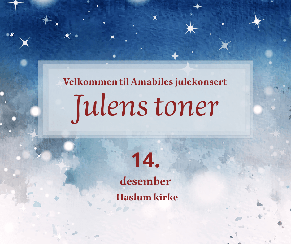 Endelig er det tid for å få julestemning intravenøst! Hva er vel bedre for det enn en korkonsert med oss, Amabile i nydelige Haslum Kirke? Vi inviterer dere inn i varmen i vakre Haslum kirke. Der vil julemagien skje, med vakker korsang, kjente og mindre kjente juleklassikere. Kom å del en time med oss!